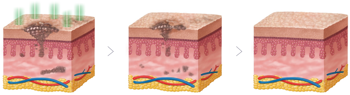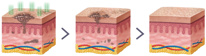 고출력 에너지를 진피층에 빠르게 전달해 멜라닌 색소만