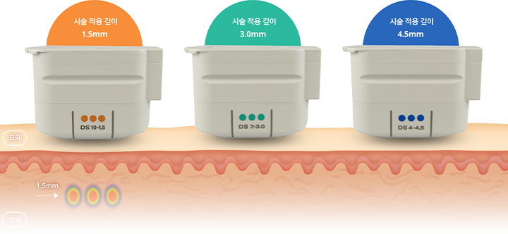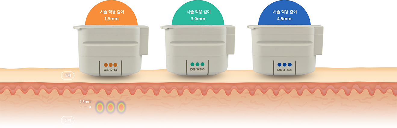 울쎄라는 1.5 / 3 / 4.5mm 세가지 팁으로