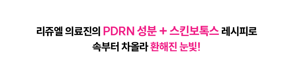 유도하는 PDRN 성분과 눈가 주름을 개선해주는 스킨보톡스 성분을 조합하여 눈 밑 다크서클&탄력 개선