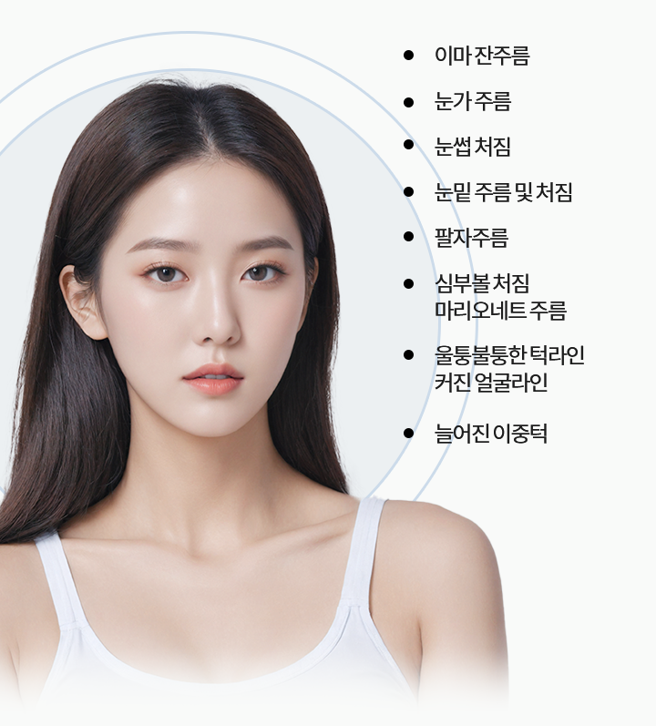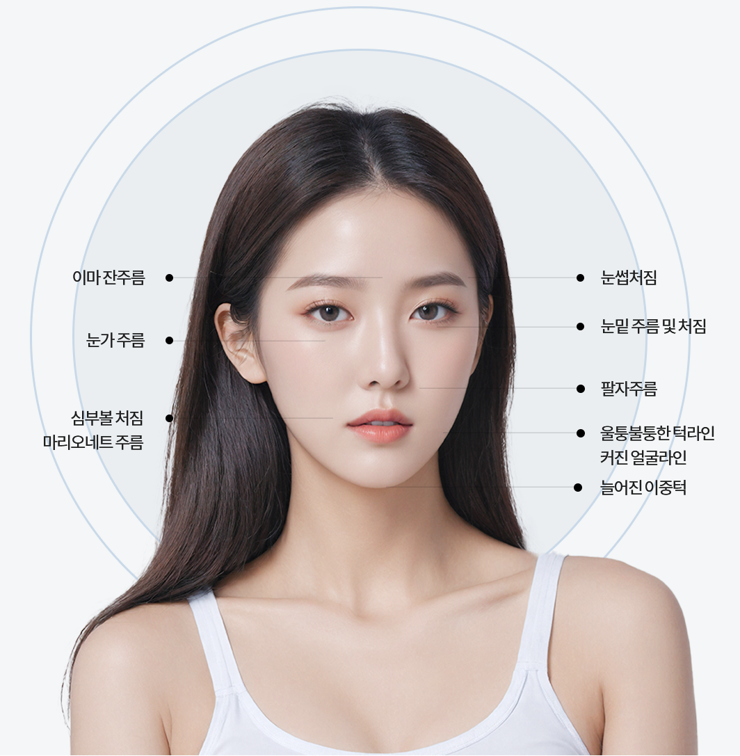 복합적인 솔루션으로 얼굴의 다양한 노화 문제를 해결합니다